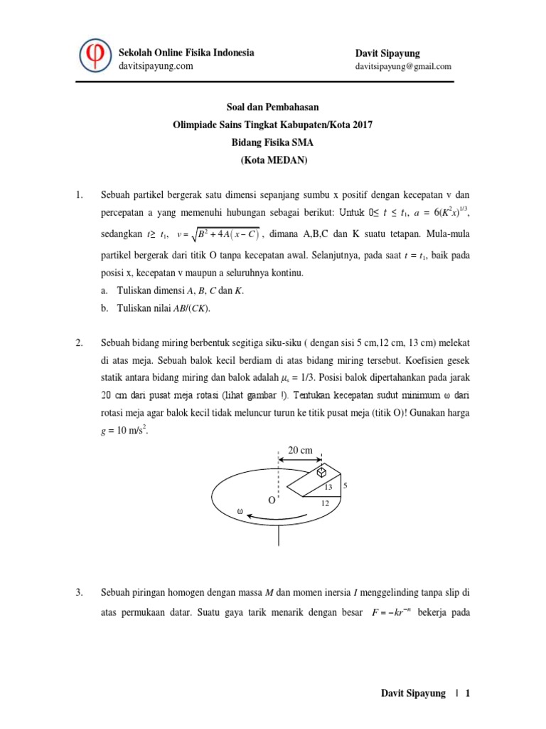 Mar 22, 2017 · kesempatan kali ini saya akan berbagi soal osk fisika sma 2017 beserta kunci jawabannya. Dua bola bermassa m dan m disusun vertikal dengan celah kecil antara kedua bola. Aug 18, 2021 · download soal osk fisika dan pembahasan 2016. Pendaftaran sampai dengan 12 januari 2020. Jul 04, 2017 · 1.