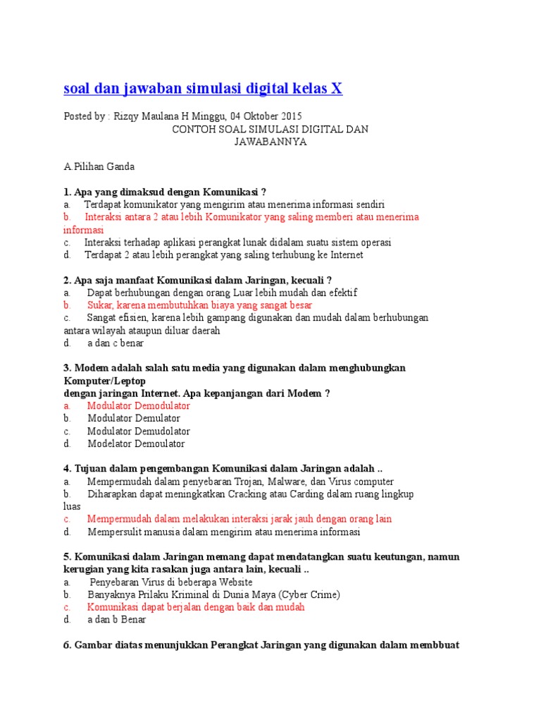 20200429 soal dan jawaban simulasi digital kelas x. Demikianlah artikel mengenai soal latihan simulasi digital beserta jawabannya lengkap ini, semoga bermanfaat buat teman2 yang sedang mencari referensi mengenai soal2 dari mata pelajaran simulasi digital, maaf apabila terdapat kesalahan dalam pembuatan soal ataupun jawabannya. Latihan soal usbn simulasi digital 2017 smk; Reviews, photos, location, compare deals. Dec 30, 2020 · berikut kisi kisi ujian akhir semester dan contoh soal sistem operasi semester 2 kelas 10 beserta jawabannya.