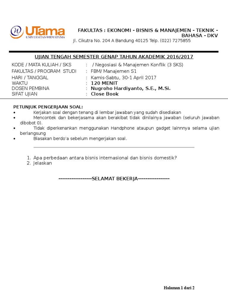 Ujian Akhir Semester Manajemen Konflik Pdf from imgv2-1-f.scribdassets.com Check spelling or type a new query. Maybe you would like to learn more about one of these? We did not find results for: